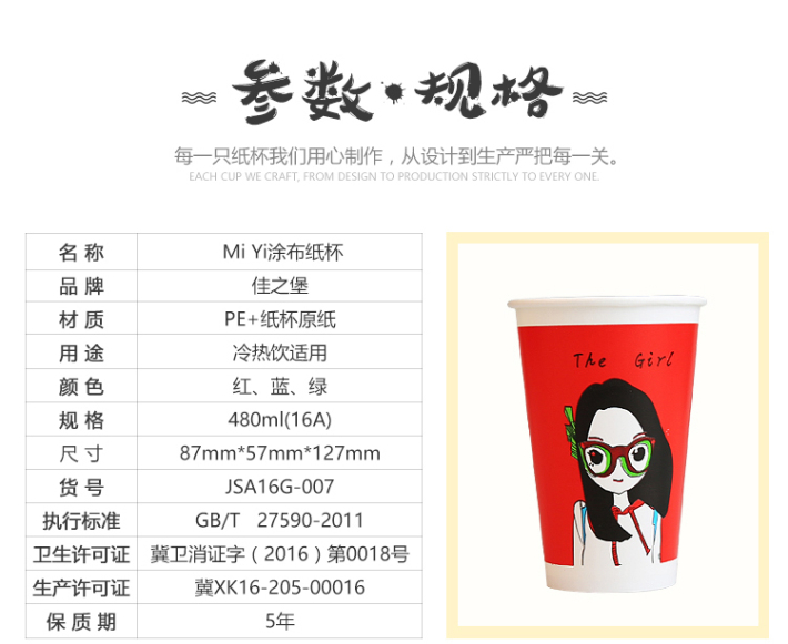 佳之堡16A特惠饮品杯(情侣)纸杯 450ml/50只 JSA16G-007