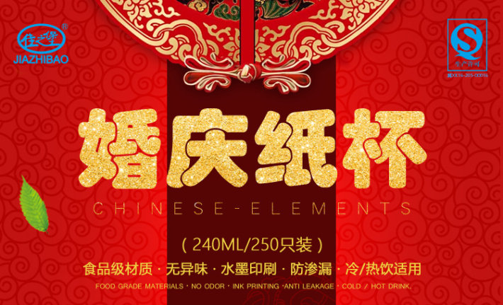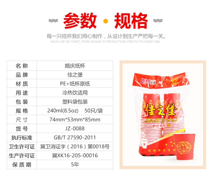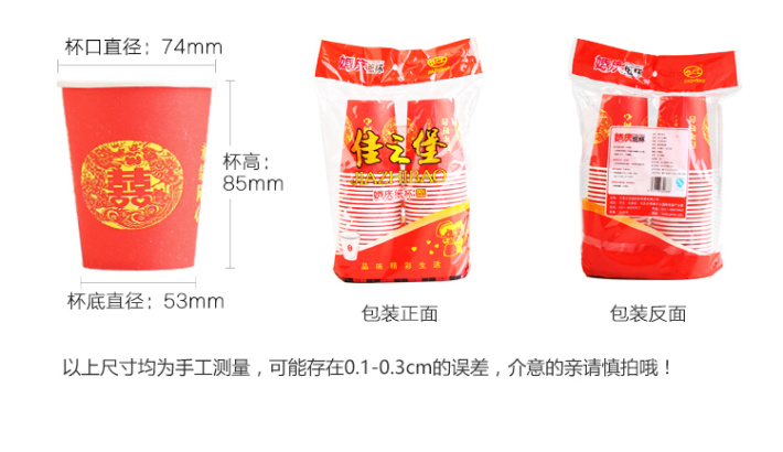 佳之堡婚庆纸杯 240ml/50只 JZ-0088
