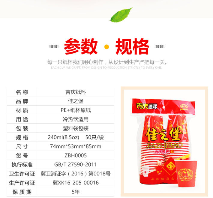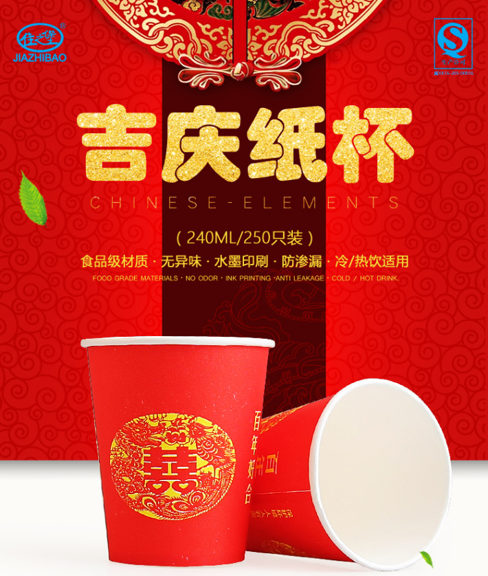 佳之堡一次性吉庆纸杯 ZBH-0005